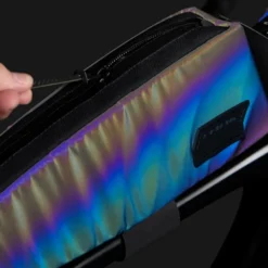 La sacoche reprend le design déjà très réussit de la Race Top Tube, issue de la gamme Race pour des produits encore plus techniques et résistant, et lui ajoute la finition irisée issue de la collaboration Look x Restrap.