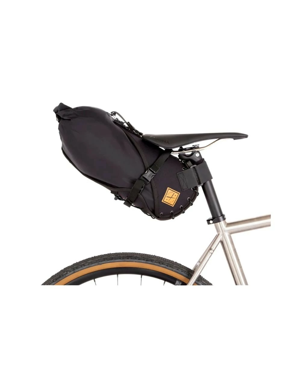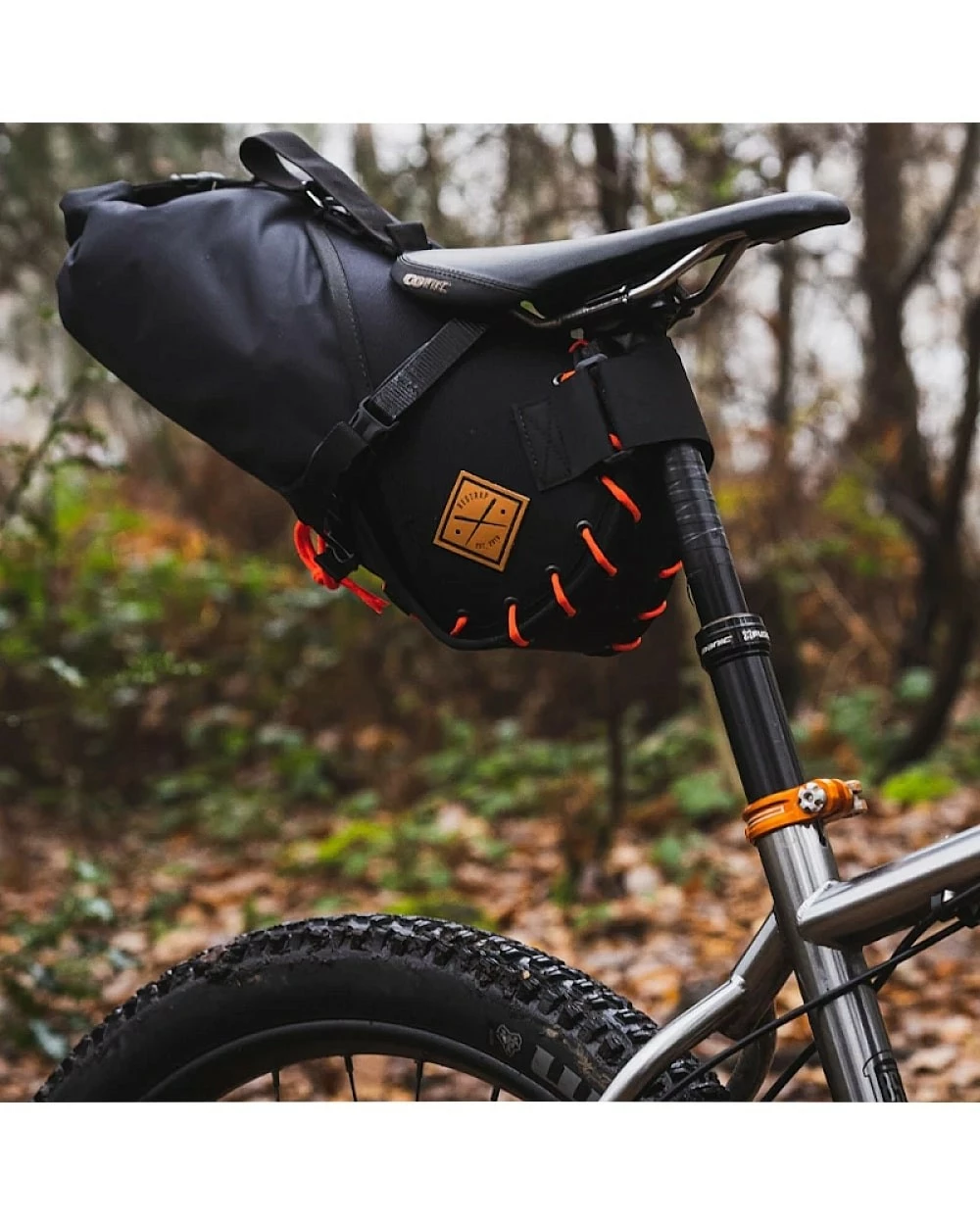 Aves ses 8L, la petite sacoche de selle Restrap permet d’emporter suffisamment d’affaires pour un journée ou plusieurs jours en comprimant la sacoche à votre convenance.