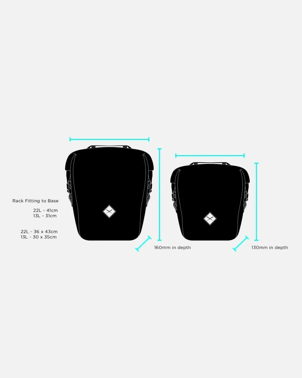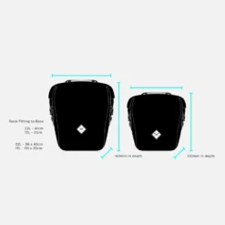 Selon vos besoins, Restrap vous propose un modèle S (13L) ou un modèle L (22L) à fixer sur votre porte-bagages arrière et avant.