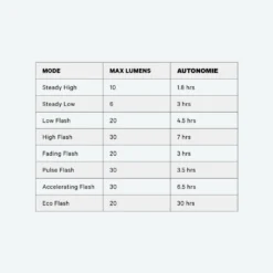 Avec ses 30 lumens de puissance, vous serez visible jusqu’à 300m et plus personne ne vous loupera dans la rue ou sur les routes périphériques.