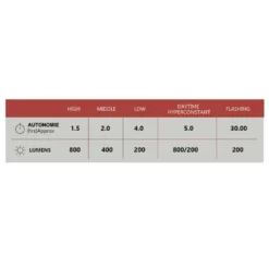 L’ergonomie de la lampe est simple et efficace. Un appui long pour l’allumer et un appui bref permet de jongler entre les 5 modes (High / Middle / Low / Daytime HyperConstant / Flashing). Un raccourci est disponible et un double appui permet de basculer en pleine puissance. La lampe CATEYE AMPP800 garde en mémoire le dernier mode activé lorsque vous la rallumez, pratique.