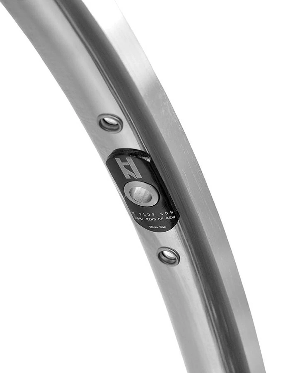 Les TB14 sont les jantes basses de la gamme H Plus Son, avec une hauteur de 14,1mm est une forme quasiment plate qui rappelle les belles Mavic MA2 ou les Monthlery à boyaux. C’est la beauté dans sa plus simple définition.
