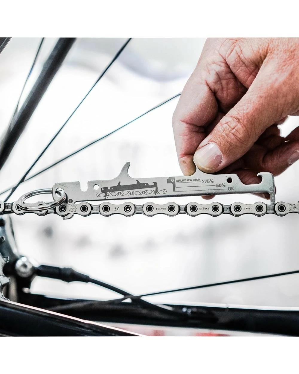 Le Chain Gauge offre 3 niveaux de mesure de l’usure de votre chaine :