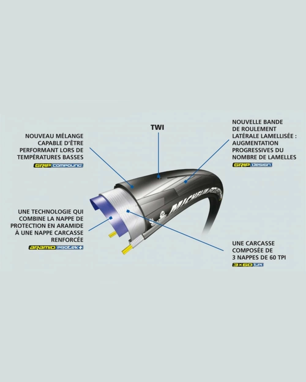 Evidemment, pour faire un super pneu toute saison il faut également proposer une excellente résistance face aux crevaison. C’est ce que propose le Michelin Power All Season avec une nouvelle gomme et sa couche Aramid Protek + disposée sous la bande de roulement. Vous obtenez le pneu cyclosportif le plus résistant face aux crevaisons. Ainsi vous pouvez rouler l’esprit tranquille toute l’année sans devoir regarder où poser vos roues.