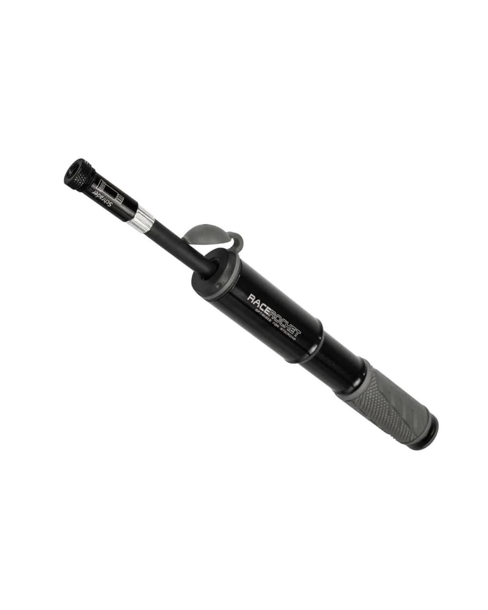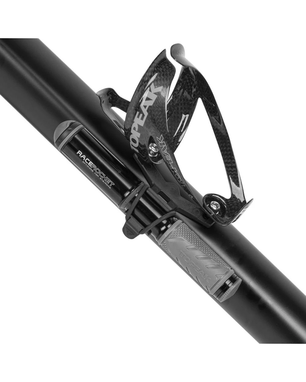 La mini-pompe RaceRocket est fournie avec son support à fixer sous le porte-bidon pour l’avoir sous la main en cas de besoin.