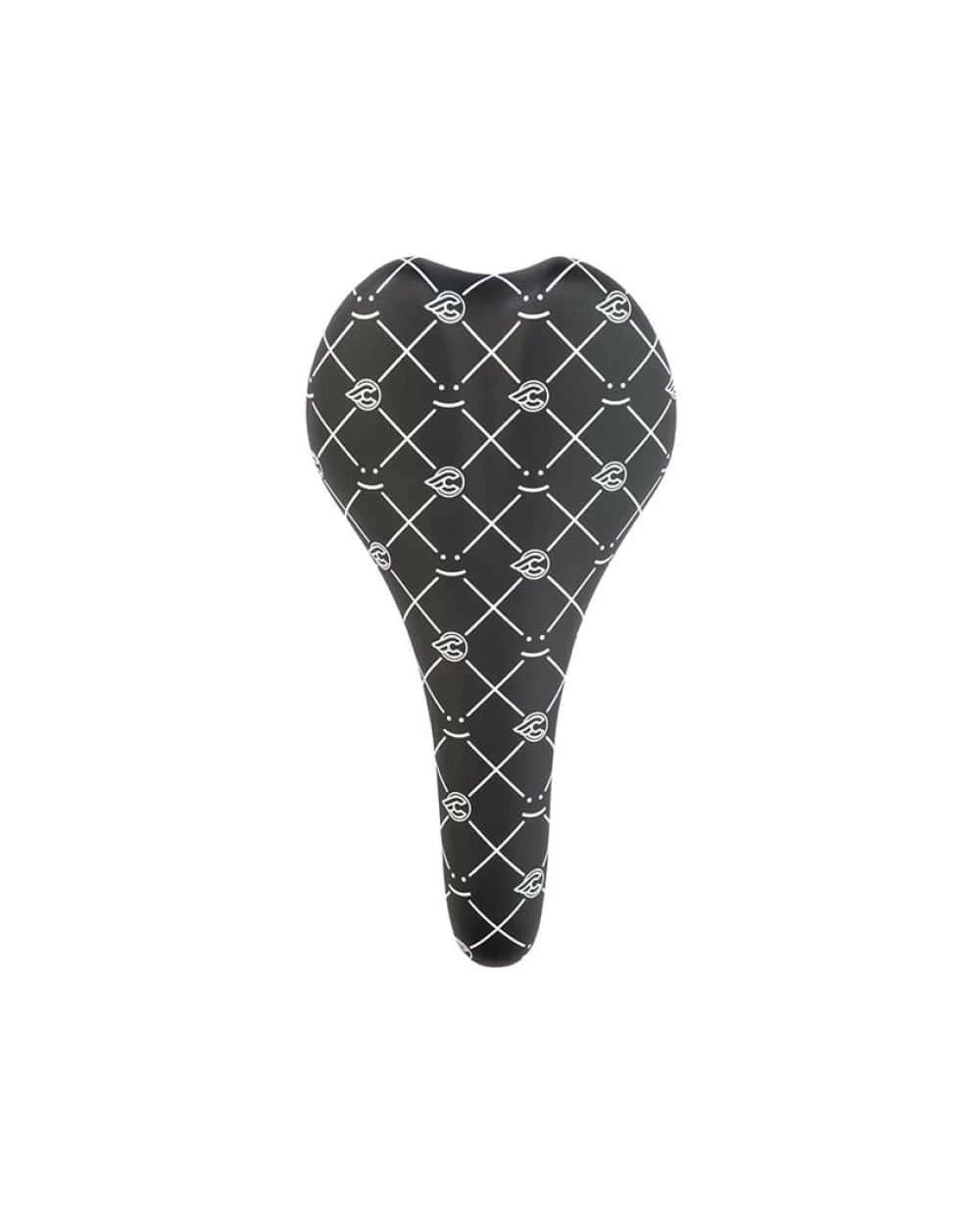 La selle Cinelli Scatto C Smile assume totalement son côté fun avec un motif subtilement créé avec des smiley qui sont visibles quand on se penche vraiment dessus (et quand le cycliste n’est pas sur sa selle 😉