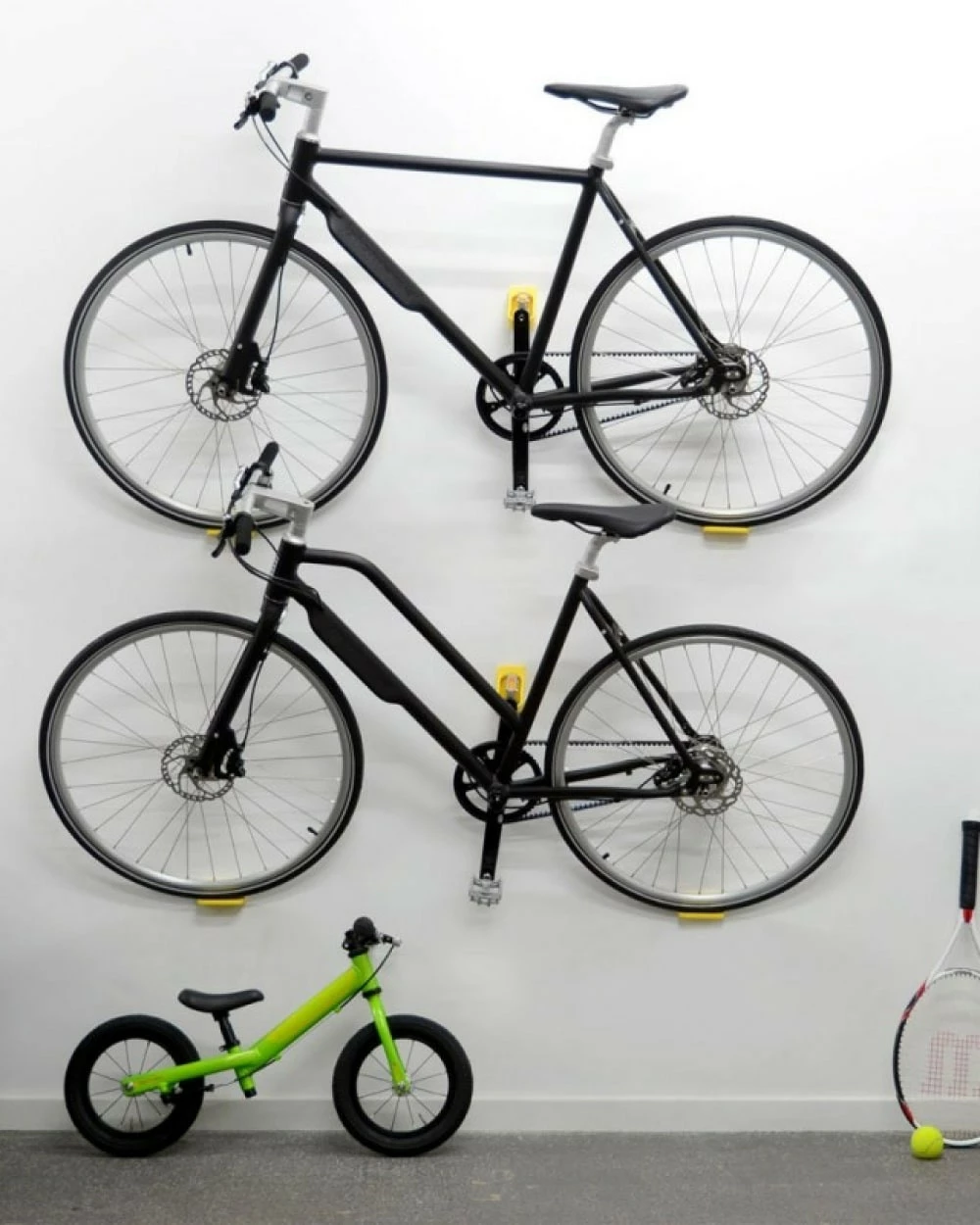Par sa position oblique, le support Cycloc Hero permet de caser plusieurs vélo dans un faible espace car chacun venant se superposer sur l’autre. Sacré gain de place !