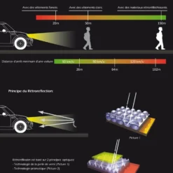 Ainsi, le gilet se pare de 4 larges bandes réfléchissantes qui font le tour du gilet pour une visibilité à 360°.