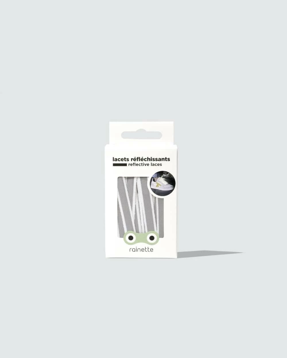Conçu par l’équipe Rainette en France sur la base d’une technologie à base de micro-billes de verre et non de peinture phosphorescente, les lacets réfléchissants Rainette sont plus efficaces et plus durables dans le temps. La production s’effectue en Europe, du côté de la Pologne.